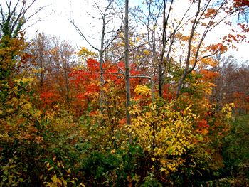 キノコ採りを兼ねて2〜3時間ほど歩き回って来ました。 健脚美人になれれば儲けもの〜とばかり、歩き回ったわりには収穫ゼロ!(~=~;) せめて、鳥海町の紅葉をゲットして来ましたので、見てください!中には命がけで写したものもあります〜(@-@;)。(3/10/27) |