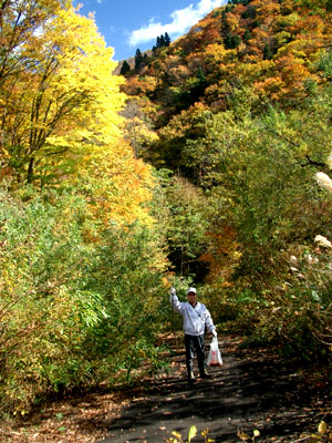 土砂崩れの帰り道〜♪ 手にしているものは、たぶん、毒キノコ〜(^-^;)。 いいんです〜♪ 目的は健脚美人!(^-^;) そして、紅葉のPRも兼ねているのかな? やっぱり自然はいいですね〜(^0^)/ |