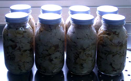 下の画像はビン詰めにした様子。 塩付けという保存方法もありますが、私はビン詰めの方が好きです。