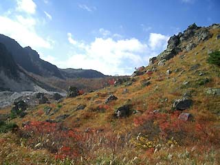 ![]() 山一面お花畑のような紅葉を見ながら、最初に到着したのが須川湖です。 目の覚めるような青い湖です♪ 下の画像は、全部 栗駒山 散策路の様子です。 一緒に歩いた気分を味わって下さいますか〜?(^_-)-☆ ![]() ![]() ![]() 遠くの山々の頂が幻想的♪ ![]() 地獄谷付近の景色です。 雄大で気持いいです〜♪ ![]() 昭和湖です。 小さいけれど、乳白色でした♪ ![]() 下山すると、足湯に浸かった観光客が、温泉を楽しんでいます。 本当の温泉は、あまりの人、人、人で入る気になれないと、相棒が・・・・残念!(><;) (^_-)-☆ |