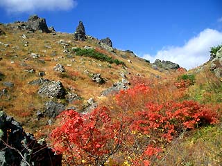 紅葉真っ盛りの栗駒山(秋田県、岩手県、宮城県に跨る標高1627.7m)を、約2時間近くかけて山歩きをして来ました。 2年前は日曜日に