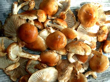 ![]() ここは比較的歩き易い場所ですし、霜が降りる頃になるとアカボウ(クリタケ)が生えてる場所です♪ 「まだ霜降りてないし・・・早いよ〜」と言ってると、突然キノコが目に飛び込んできた♪ 「モタツ?(ナラタケ)」 でも友達がとっくにモタツ採って塩漬けしたって言っていたから・・・(~=~;) キノコって似てても違う場合があるから、怖いのよね〜(^-^;) とりあえず採って誰かに聞いてみよう♪っと・・・(^_-)-☆ ![]() つる性の植物が紅葉してたので記念に・・・♪ ![]() 山から帰宅途中で、友達が家族みんなで畑仕事の真っ最中。 たずねてみたら、やはりモタツとのこと♪ きんぎょの知ってるモタツとはチョッと違うけど、 やはりモタツでした〜! 味噌汁に入れると結構美味しいキノコなので2〜3回分は楽しめるかな?♪ ![]() この画像何だか分りますか? ひょうたんのような形してますが、ミニトマトです♪ モタツと教えてくれた友達の畑で、毎年種がこぼれて勝手に実が生っているんですって♪ 何にも手を入れてないので、地面に倒れているけど、味は結構甘かったので、少し頂いて来ました〜(^_-)-☆ |