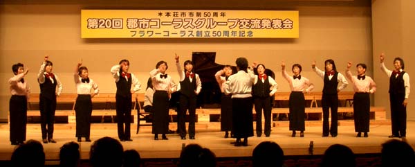 | 第20回となった本荘市由利郡コーラスグループ交流発表会が、昨日本荘市文化会館という大きな舞台で開催されました。 今年は、本荘市制50周年記念にもあたり、又、フラワーコーラス(本荘市)さんが発足50周年という記念とのことで、1市10町各町から集 まったコーラスグループの皆さんは、張り切って参加されたと思います♪ 我がグリーンコーラスも、練習不足とは言え本番に強いと暗示をかけながら、参加して参りました(^-^;)。 来春からは1市7町が市町村合併され、新市は由利本荘市としてスタートします。 今まで以上に交流の機会も増え、地域も広がり、 楽しみが増えそうな気がします♪ 夢を持ってプラス思考で行きましょう〜♪(2004/10/11) |