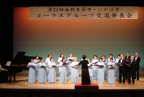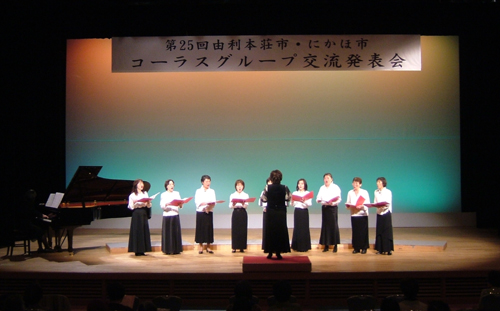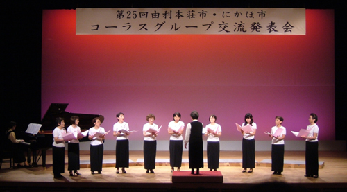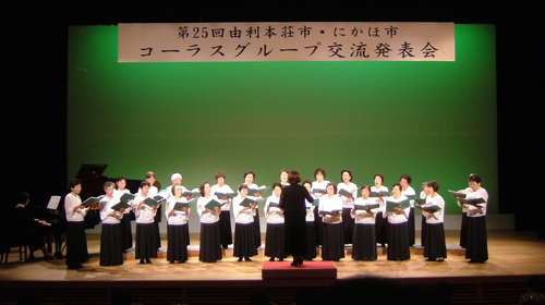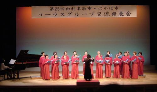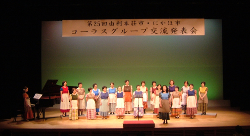 本日15日 由利本荘市西目町町民センター「シーガル」にて、開催されました。 「シーガル」の会場は、客席が劇場のように階段席なので、素晴らしかったです♪ (2009/11/15) 下の画像は、プログラム6番目に発表した我がグリーン・コーラスです。 発表曲はアンジェラ・アキ作詞作曲「手紙」 中島みゆき作詞作曲「地上の星」 普段の練習では、なかなか全員揃わず、練習不足もなんのその、 今年も「本番に強いから♪」と 皆で暗示をかけながら、楽しく歌って参りました o(*^▽^*)o この写真は、5番目に合唱した「コールきさかた」さん(象潟町)にお願いしました(^∇^*) ![]() 以下は参加されたコーラスグループさんの衣装の雰囲気ご紹介しますね〜♪ 「ひしの実コーラス」(金浦)さん♪ ![]() 「コール秋桜」(矢島)さん♪ ![]() 「フラワーコーラス」(本荘市)さん♪ ![]() 「ゆりの根コーラス」(由利)人数は少ないですが、プロ級のコーラスですよ♪ ![]() 「コールきさかた」(象潟)男性もおられて、歌に幅があり素敵ですよね〜♪ ![]() 「コールひまわり」(仁賀保)お〜、真っ赤なドレス♪ ![]() 「コール岩城」(岩城)今年は、全員ハイジの衣装でした♪ ![]() 最後は主催地・西目町「やまびこコーラス」さんです♪ ![]() |