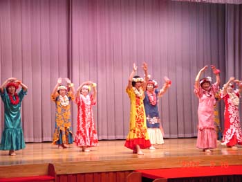 始めのうちはお揃い手作りムームーでしたが、昨年は個性?を出して色とりどりの フラムームーです。皆さんフラが大好き!これで、ウエストのくびれが出てきたら最高なのにねぇ〜(^0^;) / |
