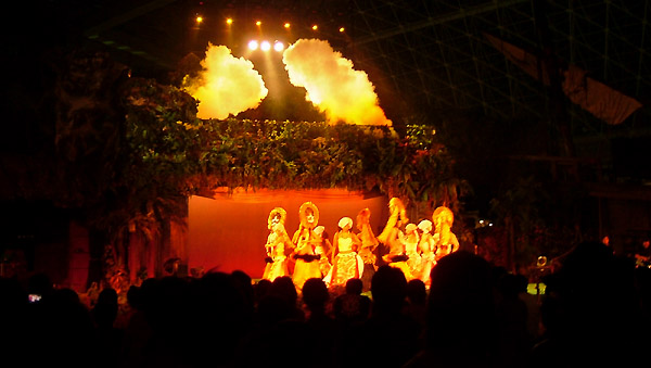 | 映画『フラ・ガール』の発祥地、いわき湯元温泉ホテル「スパ・リゾート・ハワイアンズ」に行って、 昨夜帰宅しました♪ 詳しくはこちらのページで新しくリニュアルされて載っていますよ。 夕方4時からの「マジックショー」や、夜8時10分からのの「フラダンスショー」は、夏休み中の家族連れで熱気ムンムン大賑わいでしたよヽ(^。^)ノ。 6月末のネット予約でしたが、やっと取れた1泊です(~o~)。 フラ仲間とアッシー君(フラ仲間のご主人3人)も一緒に、乗用車3台での珍道中でした〜(^-^〃)♪ (2007.8.29) ・・・☆・★・☆・☆・★・☆・☆・★・☆・☆・★・☆・☆・★・☆・・・ 映画の影響を受け、素晴らしい本場の踊り「フラダンスショー」を堪能して来ました♪ 「マジックショー」も観て来ましたが、ここではフラメンコの踊りも披露されてて、素晴らしい踊りと美しい踊り子に、もう、ウットリするのみ〜ヽ(^。^)ノ その中の、ほんの一部ですが記念に「フラの踊り」をご紹介いたしますね。 ズーム(3枚)は、主人の撮影です(^-^〃) ![]() ![]() ![]() 下3枚は私の画像ですが、暗がりで失敗です。でも、雰囲気だけは味わって頂けると思います〜(^-^〃)♪ ![]() ![]() ![]() 男性も加わった今回のプチ旅行、午後2時到着早々に、とんだハプニングもあったりして、絶対記憶に残る旅行になりました(^_-)-☆ 楽しかった2日間でしたが、アッシー君達には、大変お世話になり感謝です♪ 本当にお疲れさまでした〜〜ヽ(^。^)ノ |