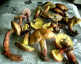 ![]() 今日は、たくさん歩くのが目的でした。 美しい池の周りを歩いていると、ギボウシや知らない花に出会いました♪ ギボウシを入れて池を撮影してみましたが、失敗ですね〜(~=~;) 下の画像が見たことのない花です。 名前が分かりませんでした(^-^;) アップで載せてみました。 博学の方、お知らせ下さいませ(^_-)-☆ ![]() ![]() ![]() ところが、お花だけではありません。池のそばの松林の中を歩くと、「うわ〜、おっきいキノコ〜!」 「イグチ科」のキノコだとすぐ思いましたが、私が食べる○○イグチは毎年10月始め頃採取するので・・「食べれるのかな〜?」 と、半信半疑(~=~;)。 とりあえず採取してみましたが・・・やっぱり、やめておきましょう〜と!(^_-)-☆ ![]() もっと歩くと、「真っ白いキノコ」が目に飛び込んだ来ました。 「綺麗なキノコねぇ〜♪、まるで毒キノコみたい・・・??」。 帰宅後調べてみると、やっぱり「シロオニタケ」という、立派な毒キノコでした(^_-)-☆ ![]() |