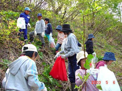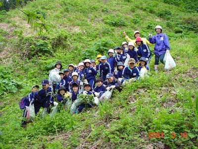 地元の小学校の総合学習の一つで、山菜の名前や毒草(トリカブト等)を学びながらの体験学習です。