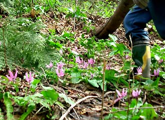 先客に逢ったり、足跡が沢山あったり、既に採られたあとでしたが、目標の山菜が目に飛び込んで来た時の快感は最高〜♪