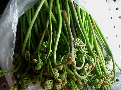 昨日、沢内の奥に行くと、まだ山桜が可憐な花を咲かせていました♪ 2枚も撮影(^_-)-☆ (撮影場所:沢内の奥 撮影時間:午後3時頃) ![]() ![]() 下の画像はミズとタラの芽です。でも、主人は山ウドばかり採取してました〜(^_-)-☆ ![]() ![]() 今日もまた、午後の家庭菜園終えてから、近くにある大栗沢の奥のテレビ塔がある山に行ってみました♪ ここは、ワラビの名所(^_-)-☆ この場所の八重桜が咲くとワラビが生えるので、またまた主人と行って来ましたが、何と由利町から来たという先客夫婦が既にワラビ10キロ以上も採取した後でした(^-^;) でも、又すぐ生えてきます(^_-)-☆ (撮影場所:鳥海町テレビ塔 撮影時間:午後3時半頃) ![]() ![]() 運動がてら、先客の取り残しワラビを約1キロ採取♪ ワラビは今年の初物です(^_-)-☆ ![]() |