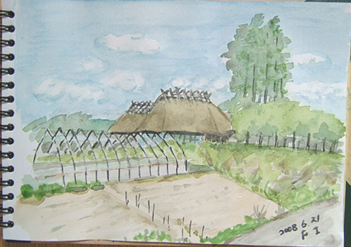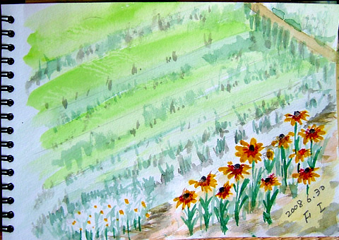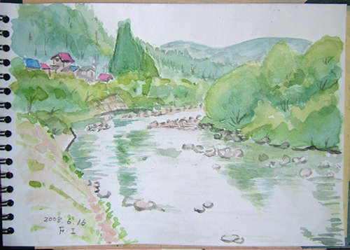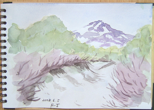 ここは鳥海山5合目より少し下った知る人ぞ知る、カメラ好きの鳥海山スポットですよ。 まだ残雪がタップリありますが、雪が消えると水芭蕉の花が咲きます♪ 一番遅い場所ですね。 ![]() 詳しくはこちら でご覧頂けます。 ここは、由利本荘市鳥海町・上田野からの風景。 鳥海山とは逆方向の八塩山系の連山をバックに樹木を中心に描いてみました。 この道路は小栗沢集落から地元小への通学路です。 ![]() 詳しくはこちら でご覧頂けます。 ここは、由利本荘市鳥海町大栗沢集落付近を流れる子吉川の風景で、 左側の建物は、大栗沢集落の家々です(^-^;) 曇り空で、暑くも無くスケッチ日和かも〜♪ ![]() 詳しくはこちら でご覧頂けます。 由利本荘市鳥海町下川内大久保集落付近の茅葺屋根のある風景です。 この辺は、リンゴ農家もありますね〜〜(^-^;) 気温急上昇、快晴で梅雨入りしたとは思えない好天でした(^-^;) ![]() 詳しくはこちら でご覧頂けます。 ここは、自宅の庭の崖に咲く、ルドベキアと田圃の風景です♪(^-^;) 直射日光が暑くて、サッサと描いてしまいました〜♪ ![]() |