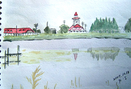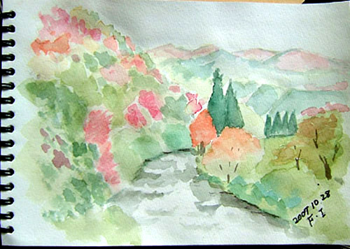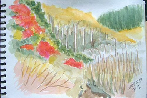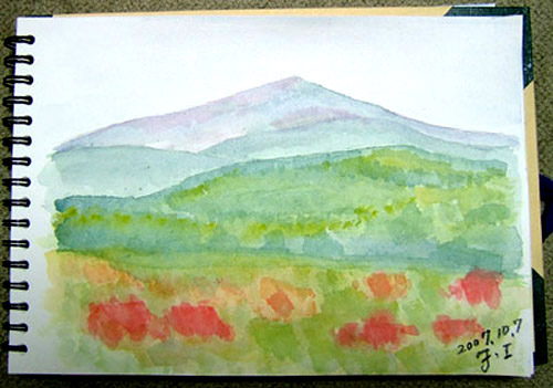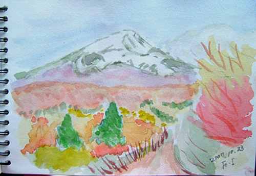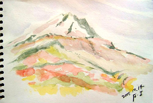 鳥海山3合目くらいの堰口の展望台で、鳥海山を描きました(~o~)