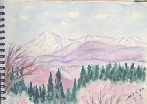 今日の現場は、今日の現場は、由利本荘市鳥海町栗沢から遠上山を描きました。