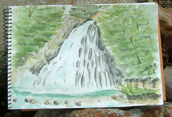 波が荒く、サーファーの人達が数人、休日を楽しんでましたね〜♪ で、本日の出来上がり〜♪ 詳しくはこちら でご覧頂けます。 ![]() 山と海のスケッチの次は川がいいだろう〜、ということだそうです で、今日の出来上がり〜。 詳しくはこちら でご覧頂けます。 ![]() 法体の滝です(由利本荘市・鳥海町・百宅) 東宝映画「釣りキチ三平」のロケ現場。 作品中では「夜鳴き谷」として登場していますよ。 行く途中に、お客さん載せた観光バスとすれ違いました 、 結構、ロケ現場を観たいという観光バス来られてるんですね〜♪ で、今日の出来上がり〜(^-^;) 詳しくはこちら でご覧頂けます。 ![]() *:..。o○☆*゚¨゚ ・*:..。o○☆*゚¨゚゚・*:..。o○☆*:..。o○☆*゚¨゚゚・*:..。o○☆*゚¨゚゚・*:..。o スケッチ旅行(宮城県・気仙沼大島) *:..。o○☆*゚¨゚ ・*:..。o○☆*゚¨゚゚・*:..。o○☆*:..。o○☆*゚¨゚゚・*:..。o○☆*゚¨゚゚・*:..。o (車の無い人はリフトで上がります) ここは、宮城県気仙沼市大島・亀山頂上から小田の浜方面の風景。 観光客来るので、落ち着かないですね〜(^-^;) で、本日の出来上がり〜♪ 詳しくはこちら でご覧頂けます。 ![]() そこから黒松の遊歩道15分歩き、 ここは、宮城県気仙沼市大島・竜舞崎から黒崎(島)の風景スケッチでした。 で、今日の出来上がり〜。 詳しくはこちら でご覧頂けます。 ![]() 描いていたら、朝お風呂でお喋りした東京から来られた ヤングママさんが散歩に来られ、またまた、お喋り(^-^;) で、2日目の1枚目出来上がり〜(7時頃) で、今日の出来上がり〜(^-^;) 詳しくはこちら でご覧頂けます。 ![]() でも、きんぎょは、反対側の錦秋湖の傍の線路を描き、 主人が線路横の錦秋湖描きましたよ\(☆^∇゚)o で、今日の出来上がり〜(^-^;) 詳しくはこちら でご覧頂けます。 ![]() |