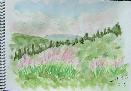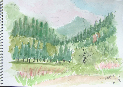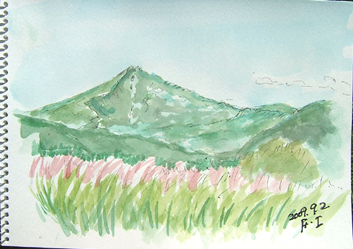 朝、久々にスケッチに行くと誘われ、急いで食料、 飲み物用意して、さ〜今回は何処に?(^-^;) 1枚目の現場は、にかほ市・巾山スキー場からの鳥海山スケッチです 今日の1枚目出来上がり〜。 雲もなくスッキリ、まぁまぁかな〜(^▽^;) ![]() 2枚目の現場は、仁賀保高原から象潟方面へ下りる途中でのスケッチです。 2枚目出来上がり〜 右上の山は男鹿半島ですよ〜〜♪ ![]() 3枚目は、鉾立5合目からの稲倉岳&奈曽渓谷方面のスケッチ。 雲があっという間に出てきて、見えなくなりました〜 ![]() 4枚目の現場は、国民宿舎・大平山荘展望台より日本海スケッチです。 ダケカンバは、もう〜紅葉していましたね〜(^▽^;) 4枚目出来上がり〜♪ ![]() 詳しくはこちら でご覧頂けます。 *:..。o○☆*゚¨゚ ・*:..。o○☆*゚¨゚゚・*:..。o○☆*:..。o○☆*゚¨゚゚・*:..。o○☆*゚¨゚゚・*:..。o 午前中、又またスケッチに行くと誘われ、何処に行くのやら〜(^-^;) 1枚目の現場は、由利本荘市鳥海町 大平キャンプ場(笹子地区)付近からの丁岳スケッチです 今日の1枚目出来上がり〜。 やはり、紅葉の時期がいいですね〜(^▽^;) ![]() 2枚目の現場は、由利本荘市鳥海町・外山集落の裏山道路からのスケッチです。 手前にあるススキのある風景が気に入ったらしい(^-^;) バックの山の左側には鳥海山がありますが、こちらも午前中は雲に覆われていました。 2枚目出来上がり〜♪ ![]() 詳しくはこちら でご覧頂けます。 *:..。o○☆*゚¨゚ ・*:..。o○☆*゚¨゚゚・*:..。o○☆*:..。o○☆*゚¨゚゚・*:..。o○☆*゚¨゚゚・*:..。o |