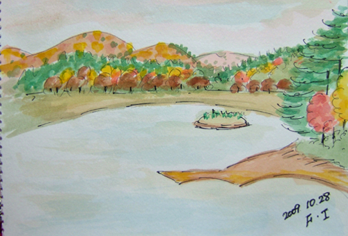 今日は、県内の秋ノ宮温温泉郷から泥湯温泉、小安峡に至る山越え道路を お友達誘ってスケッチドライブでした♪ 1枚目の現場は、秋ノ宮から泥湯温泉に至る山越え道路でのスケッチ。 1枚目出来上がり〜♪ ![]() 2枚目の現場は、川原毛地獄付近の道路でのスケッチです。 2枚目出来上がり〜♪ ![]() 3枚目の現場は、木地山用水池のスケッチです。 3枚目出来上がり〜♪ ![]() 詳しくはこちら でご覧頂けます。 *:..。o○☆*゚¨゚ ・*:..。o○☆*゚¨゚゚・*:..。o○☆*:..。o○☆*゚¨゚゚・*:..。o○☆*゚¨゚゚・*:..。o 1枚目の現場は、由利本荘市矢島町・花立公園にて。 久しぶりに紅葉に染まる池の風景を描いてみました。 1枚目出来上がり〜♪ ![]() 2枚目の現場は、由利本荘市鳥海町・矢の本集落からのスケッチです。 集落後方裏山に見えるのは、テレビ送信アンテナ群と カラフルに色づいた紅葉風景を描いてみました♪。 2枚目出来上がり〜♪ ![]() 詳しくはこちら でご覧頂けます。 *:..。o○☆*゚¨゚ ・*:..。o○☆*゚¨゚゚・*:..。o○☆*:..。o○☆*゚¨゚゚・*:..。o○☆*゚¨゚゚・*:..。o |