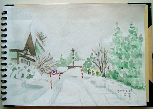 で。由利本荘市鳥海町・上伏見集落の風景。 国道108号線から陸橋に登る手前(^-^;)