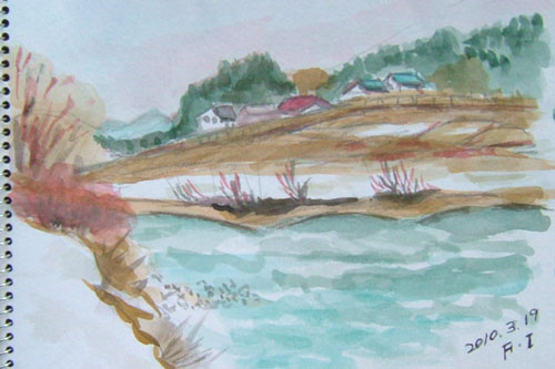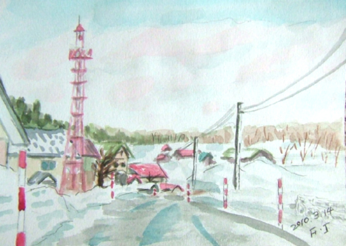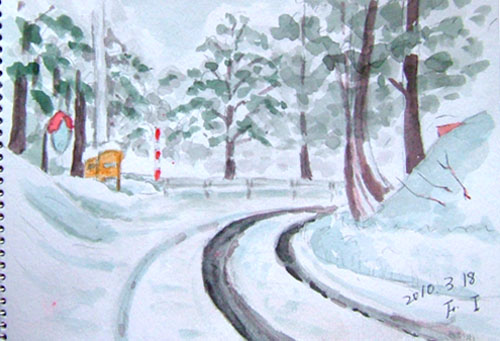 *:..。o○☆*゚¨゚ ・*:..。o○☆*゚¨゚゚・*:..。o○☆*:..。o○☆*゚¨゚゚・*:..。o○☆*゚¨゚゚・*:..。o 午前中、お天気にも恵まれてスケッチ(^▽^;)♪ 中直根の友人宅に行った帰り道の風景です。 奥の赤い屋根のお家は、フラ仲間のお宅ですよ(^▽^;) で、本日の出来上がり〜(=^▽^=) 今は使われてない消防の半鐘と民家の赤い屋根、 赤い除雪目印棒がメインの下り坂風景、簡単スケッチです(^▽^)/♪ ![]() 詳しくはこちら でご覧頂けます。 *:..。o○☆*゚¨゚ ・*:..。o○☆*゚¨゚゚・*:..。o○☆*:..。o○☆*゚¨゚゚・*:..。o○☆*゚¨゚゚・*:..。o 由利本荘市鳥海町・猿倉にて。 地元温泉施設・鳥海荘での日帰り入浴からの帰り道。 いつも近道を通るのですが、そこの杉林の中の雪道の風景が 遠近感もあり素敵でしたのでスケッチ♪ で、本日の出来上がり〜(=^▽^=) ミラーと除雪目印棒が気に入っています〜(^▽^)/♪ ![]() 詳しくはこちら でご覧頂けます。 *:..。o○☆*゚¨゚ ・*:..。o○☆*゚¨゚゚・*:..。o○☆*:..。o○☆*゚¨゚゚・*:..。o○☆*゚¨゚゚・*:..。o 雑なスケッチ、2枚も描きました〜(^▽^;) で、本日の出来上がり〜(=^▽^=) 単純なスケッチです♪ 詳しくはこちら でご覧頂けます。 *:..。o○☆*゚¨゚ ・*:..。o○☆*゚¨゚゚・*:..。o○☆*:..。o○☆*゚¨゚゚・*:..。o○☆*゚¨゚゚・*:..。o |