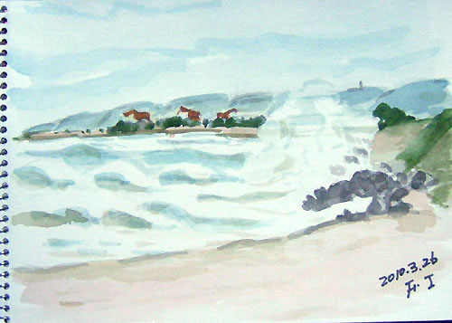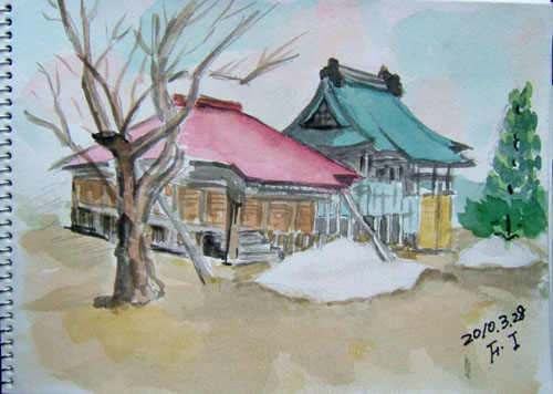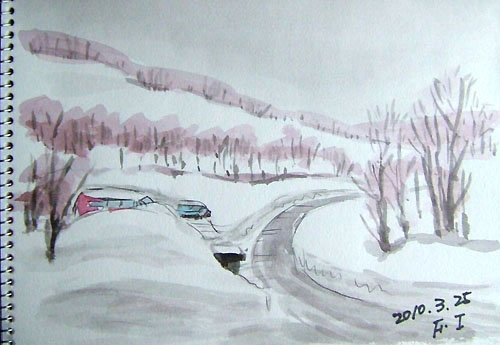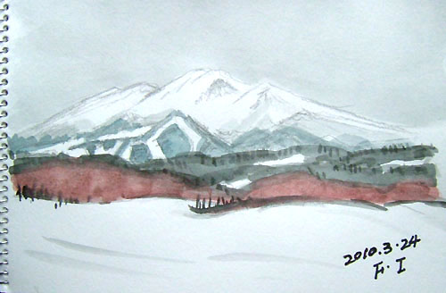 *:..。o○☆*゚¨゚ ・*:..。o○☆*゚¨゚゚・*:..。o○☆*:..。o○☆*゚¨゚゚・*:..。o○☆*゚¨゚゚・*:..。o *:..。o○☆*゚¨゚ ・*:..。o○☆*゚¨゚゚・*:..。o○☆*:..。o○☆*゚¨゚゚・*:..。o○☆*゚¨゚゚・*:..。o 3月24日から1泊で、 又また乳頭温泉・プチ旅行♪ 今回は、主人の友人ご夫婦と一緒の旅でした♪ 1枚目は、乳頭温泉に向かう途中の桜並木通りから、 横の空き地で秋田駒ヶ岳スケッチ♪ で、1枚目出来上がり〜♪ これは、雲が高く、秋田駒ケ岳がくっきり見えて御機嫌でした〜♪ 宿泊ホテル「乳頭温泉郷・休暇村」303号室から。 で、2枚目出来上がり〜♪ 小雪が降っていて、奥にある山並みは見えませんでした(^▽^;)♪ 詳しくはこちら でご覧頂けます。 *:..。o○☆*゚¨゚ ・*:..。o○☆*゚¨゚゚・*:..。o○☆*:..。o○☆*゚¨゚゚・*:..。o○☆*゚¨゚゚・*:..。o 1枚目、由利本荘市・西目海岸の日本海スケッチです。 で、1枚目出来上がり〜♪ 波が荒れてて、テトラにぶつかった波は高く舞い上がり、迫力ありました〜♪ で、2枚目出来上がり〜。 波の感じは、右側とは違いましたね〜(^▽^;)♪ 詳しくはこちら でご覧頂けます。 *:..。o○☆*゚¨゚ ・*:..。o○☆*゚¨゚゚・*:..。o○☆*:..。o○☆*゚¨゚゚・*:..。o○☆*゚¨゚゚・*:..。o 今日は、久々に買い物がてら 隣りの矢島町スケッチです♪ 1枚目、由利本荘市・矢島町 土田家(国指定重要文化財)スケッチです。 土田家住宅は17世紀後半に造られたと推定されて、 秋田県内最古の古い民家とのこと。 で、1枚目出来上がり〜♪ 屋根には、昨夜降った雪が うっすらと残っていましたよ〜♪ で、2枚目出来上がり〜。 矢島からの鳥海山は、頂上にコブが2個見えて可愛いのよね〜(^▽^;)♪ で、3枚目出来上がり〜。 屋根から落ちた雪が固まってました〜(^▽^;)♪ 詳しくはこちら でご覧頂けます。 *:..。o○☆*゚¨゚ ・*:..。o○☆*゚¨゚゚・*:..。o○☆*:..。o○☆*゚¨゚゚・*:..。o○☆*゚¨゚゚・*:..。o |