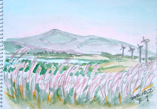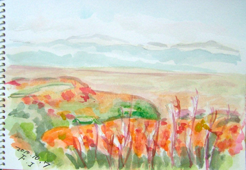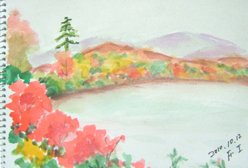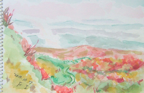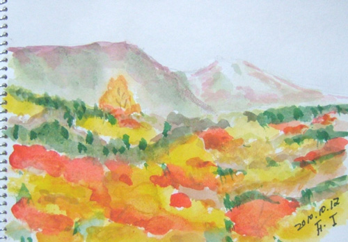第三現場は、登山途中の紅葉の簡単スケッチです(賽ノ河原)