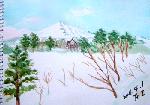 今日は朝から雲ひとつないブルースカイ♪ またまた、鳥海山スケッチドライブでした〜(^-^;)