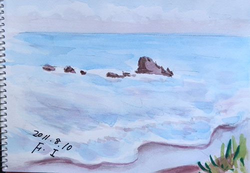 翌朝、帰宅途中の日本海。 風があったので波を描いてみました〜♪