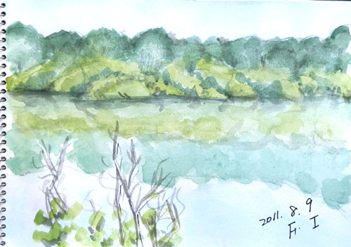 十二湖のなかの王池ですが、気乗りのしないスケッチでした〜〜。