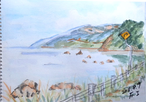 竜泊ラインの日本海、スケッチ心が出たみたい〜。