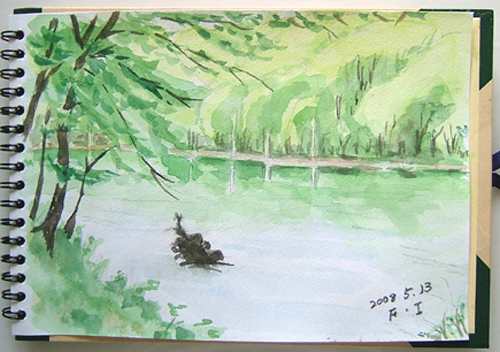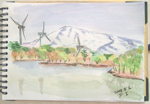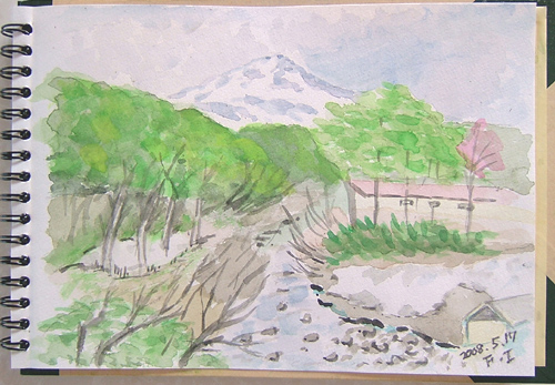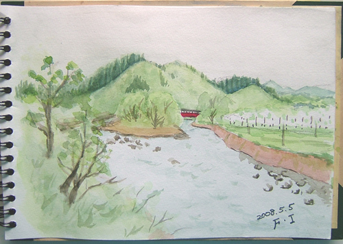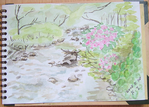 キャンプ場からはウグイスの囀りが聞こえ、のどかな環境ですね。 そうそう、この貯水池で釣りをされてる人がおられました♪ ![]() 詳しくはこちら でご覧頂けます。 ここは、鳥海町、村木の山道のスケッチとなり、ブナの新緑と 楢の木の白っぽい若葉を描きました。 なかなか雰囲気は出せたと思います〜(^-^;) ![]() 詳しくはこちら でご覧頂けます。 ここは、笹子(じねご)地区の丁川(ひのとかわ)の渓流です。 さすが、GWだけあって、関東地区の車ナンバーがイワナやヤマメ釣りに来られていました♪ 山菜採りから始め、ウド、アイコ、ホンナ、コゴミ、サシボなど、少しづつ採取後、近くの渓流でスケッチ♪ ![]() 詳しくはこちら でご覧頂けます。 ここは、由利本荘市鳥海町・牛越の下流付近の子吉川風景。 子吉川と笹子川の合流点を描きました。 主人が子供の頃は、子吉川が鳥海川で笹子川が子吉川と呼ばれていたそうですよ。 故郷出身の方は、懐かしい場所でしょうね〜(^-^;) 右に白く見えるのは、リンゴの木々です♪ ![]() 詳しくはこちら でご覧頂けます。 ここは笹子(じねご)の奥、皿川源流である大池の風景です。 子吉川の支流となる笹子川の更に支流となる所です。 真ん中の黒い物体は、木株です(^-^;) ![]() 詳しくはこちら でご覧頂けます。 ここは鳥海山4合目、堰口(せきぐち)。 知る人ぞ知る、カメラ好きの鳥海山スポットに行き、まだ残雪のある風景を描いて来ました〜(^-^;) ![]() 詳しくはこちら でご覧頂けます。 ここは、花立公園(矢島町)です。 花立公園のコテージのある方に行くと、 魚釣りしていたオジサンがいて、 何と、鯉が沢山釣れていましたよ〜 (*^-゜)v ![]() 詳しくはこちら でご覧頂けます。 ここは、笹子(じねご)地区の丁川に咲いてるタニウツギが入った景色を 狙って描いてみました(^-^;) やはり、旬のタニウツギを画面に入れたいですからね〜(*^-゜)v ![]() |