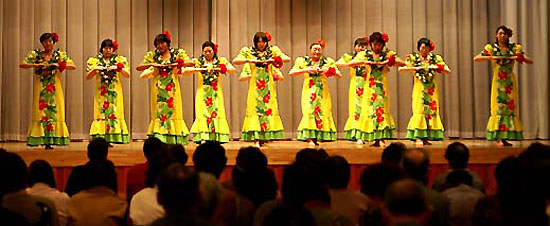 多少気分を変えて、フラ娘?を味わって来ました(^_-)-☆ 舞台では今年も最後のトリを踊るということで、猛練習したんですよ♪(作者:画面上では左3番目) ![]() 発表曲は 「アイムハワイ」 「カイマナヒラ」の2曲。 ハワイ気分のおすそ分けです(^-^;)。 昨年入った2人の新人さんもすっかり上手になりました♪ 猛レッスンのお蔭?(^_-)-☆( 会員15名中12名参加 作者:画面上では左2番目)) ![]() |