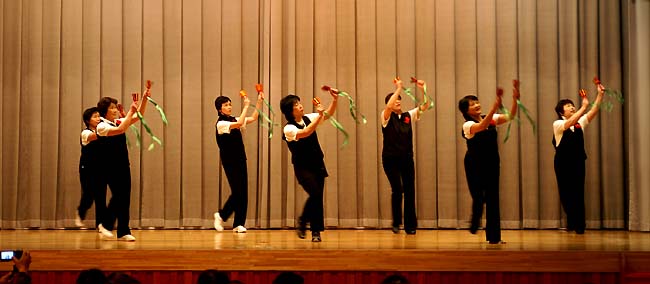 今年も我がグリーンコーラスは、9時半のオープニングのコーナーでの発表でした。 曲は「すみれの花咲く頃」「学生時代」「お祭りマンボ」の3曲です。皆さんご存知の曲ですよね♪ 今年もフラの練習をたくさん楽しみながらも、フラ衣装は昨年と同じです(^-^;) 舞台では今年も最後のトリを踊るということは、衣装の華やかさがウケテイルのでしょうか? 発表曲は 「ビューティフル・カワイ」 「バリバリの浜辺」の2曲。 今年、友達に誘われて『健康ダンス』なるものにも参加しました。あまり難しくすると参加者が減るということで、今年は簡単なリズムダンスとか。 2曲踊ると、汗が噴出して来ましたよ〜。↓確かに健康的なダンスですね♪ ![]() この他にも舞台上で色々発表されました。 大正琴、日本舞踊の教室、太極拳、社交ダンス、詩吟教室、三味線など・・・♪。 ![]() 又、特別展示コーナーには、今年も先生や生徒たちの俳句、短歌、書道、文章本、パッチワーク、刺し子、手編み、リフォーム、染物などの数多い作品がありました。 そうそう、スケッチ教室も今年からニュー講座となり、その一部ご紹介しますね。 |