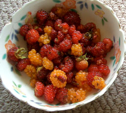 この時期は、黄色や赤い木苺が盛りのようですね〜。 黄色の木苺は東京の町田市に住んでいた時も、三浦市に住んでいた時も良く見かけたが、 私としては、黄色の方が好みでした(^-^;)。 体力づくりや健脚づくりが、いつの間にか食いしん坊に変身。 こんな道草が、これまた楽しい♪ |