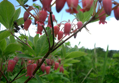 ドウダンツツジに似たこの花は、ウラジロヨウラクといって、鳥海山4合目の湿原地帯に多数咲いておりました(7月上旬)。 ピンクの可愛い花を見ると、自然と顔がチーズ(笑顔)になってます〜♪ |